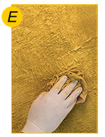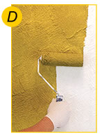 4- Após a secagem total da Textura (min. 24 horas) aplique uma demão de Gel Envelhecedor na cor desejada (diluído em até 20% com água) em uma faixa de aproximadamente 40 cm de largura com o auxílio de um rolo de lã ou uma trincha (fig. D).