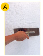 5- Retirar o excesso de produto com a desempenadeira até obter uma camada na altura da partícula maior de quartzo contida no produto (1,5 a 2,0mm aproximadamente) (fig. A).
