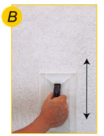 6- Utilizando a desempenadeira de Plástico fazer sucessivos movimentos verticais passando-a sobre o produto algumas vezes até se obter um desenho uniforme (fig. B).