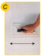 7- Logo após, com os riscos verticais prontos, passe a desempenadeira de Plástico poucas vezes no sentido horizontal afim de cruzar levemente os riscos (fig. C).