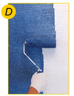 8- Após a secagem total da Textura (min. 24 horas) aplique uma demão de Gel Envelhecedor na cor desejada (diluído em até 20% com água) em uma faixa de aproximadamente 40 cm de largura com o auxílio de um rolo de lã ou uma trincha (fig. D).