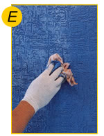 9- Logo em seguida, com um tecido branco (de preferência algodão) ligeiramente umedecido em água, retire o excesso do Gel Envelhecedor que está aplicado nos relevos mais altos a fim de remover parcialmente, deixando as depressões com uma quantidade maior de Gel Envelhecedor (fig. E).
