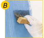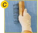 5- Logo em seguida com o Gel ainda úmido, escovar a superfície várias vezes com uma vassoura de pêlos ou com uma escova macia no sentido vertical de cima para baixo, afim de formar suaves riscos (fig. B).