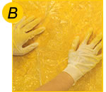 4- Logo em seguida, com o Gel ainda úmido, remover o excesso esticando um plástico desamassado sobre a superfície (fig. B).