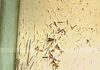 Remova a massa corrida e aplique uma demão de tinta branco fosco diluído com até 30% de aguarrás. Depois corrija as imperfeições com massa a óleo, lixe, elimine o pó e aplique acabamento.